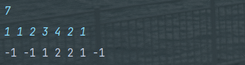 bw.write((deque.isEmpty() ? -1 : deque.peekLast()) + "\n");