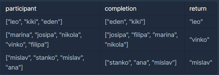 hm.put(completion[i], hm.get(completion[i]) - 1);