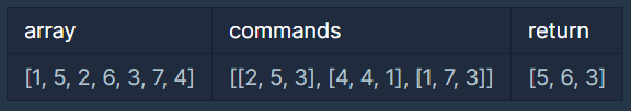 for (int i = commands[t][0] - 1; i <= commands[t][1] - 1; i++) {