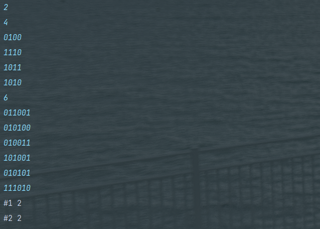bw.write("#" + test_case + " " + path[200] + "\n");