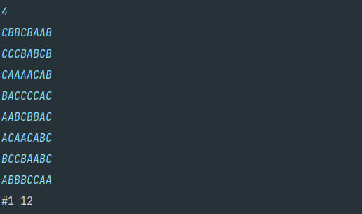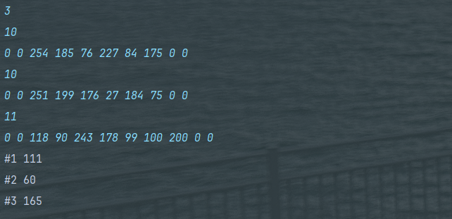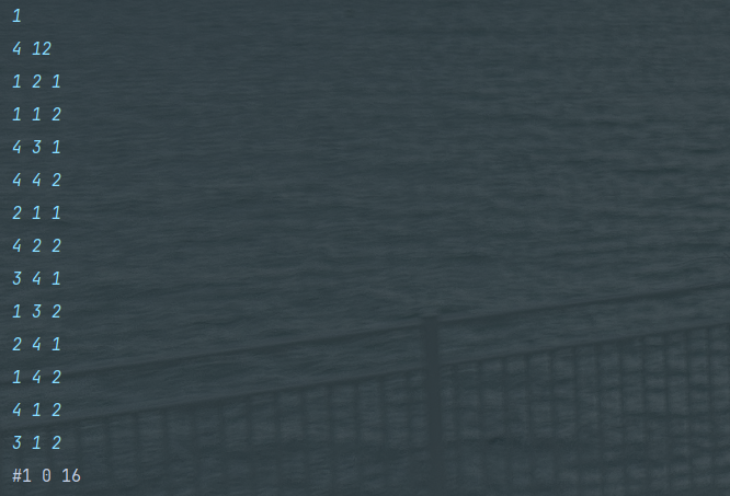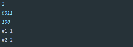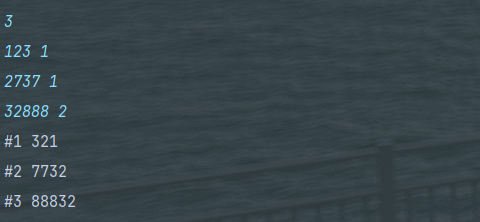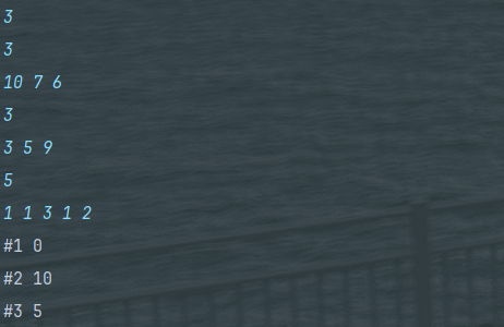 bw.write("#" + test_case + " 0\n");