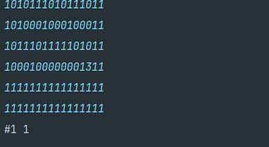 bw.write("#" + test_case + " 1\n");