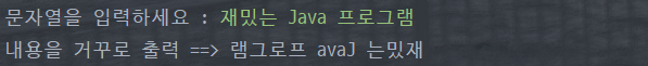 System.out.print("내용을 거꾸로 출력 ==> ");