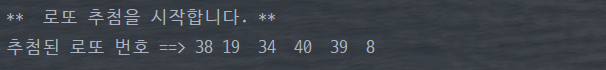 System.out.println("**\t로또 추첨을 시작합니다.\t**");
