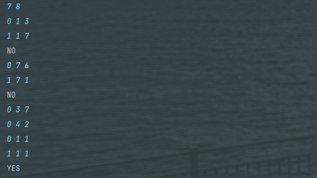 else if (result1 != result2) System.out.println("NO");