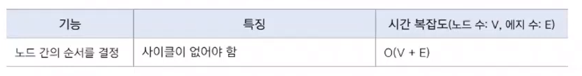 위상 정렬에서는 항상 유일한 값으로 정렬되지 않는다. 또한, 사이클이 존재하면 노드 간의 순서를 명확하게 정의할 수 없으므로 위상 정렬을 적용할 수 없다.