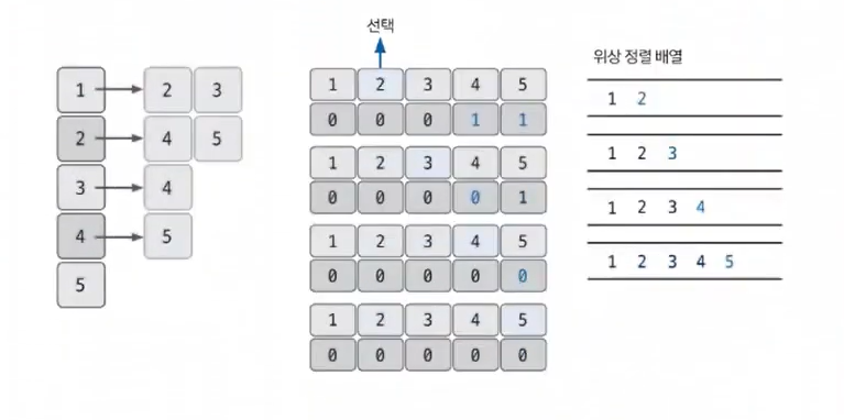 위상 정렬은 사이클이 없는 방향 그래프에서 노드 순서를 찾는 알고리즘이다.