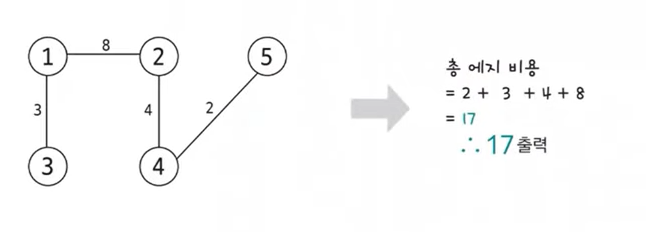 최소 신장 트리란 그래프에서 모든 노드를 연결할 때 사용된 에지들의 가중치의 합을 최소로 하는 트리이다.