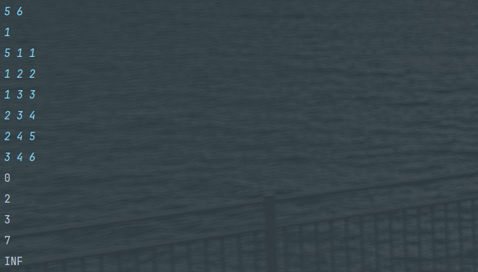 if (result[i] == Integer.MAX_VALUE) System.out.println("INF");
