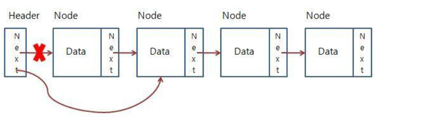 삭제 대상 노드의 이전의 노드가 삭제 대상 노드의 다음의 노드를 가리키게 하고 해당 노드는 삭제된다.