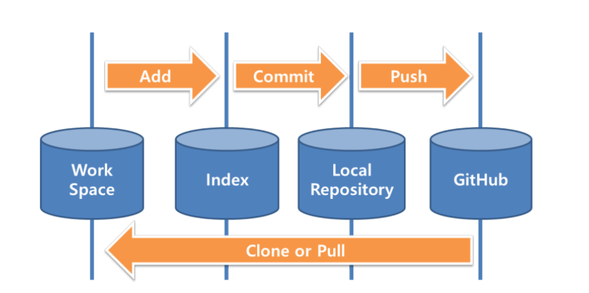 Git은 Local에서 버전 관리 시스템을 운영하는 방식이며, GitHub는 Cloud 서버 저장소를 이용한다는