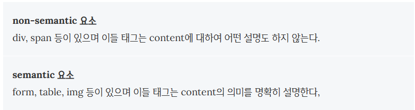HTML 요소는 non-semantic 요소, semantic 요소로 구분할 수 있다.