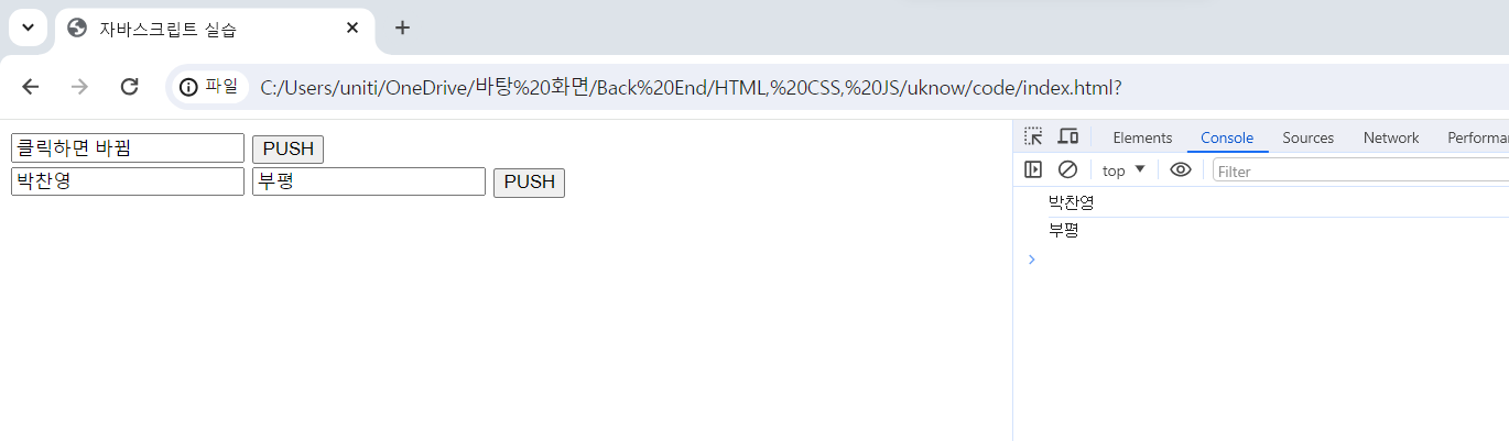 여기에서 사용자가 입력한 값을 읽어들일 때는 요소의 value 속성에 접근한다.