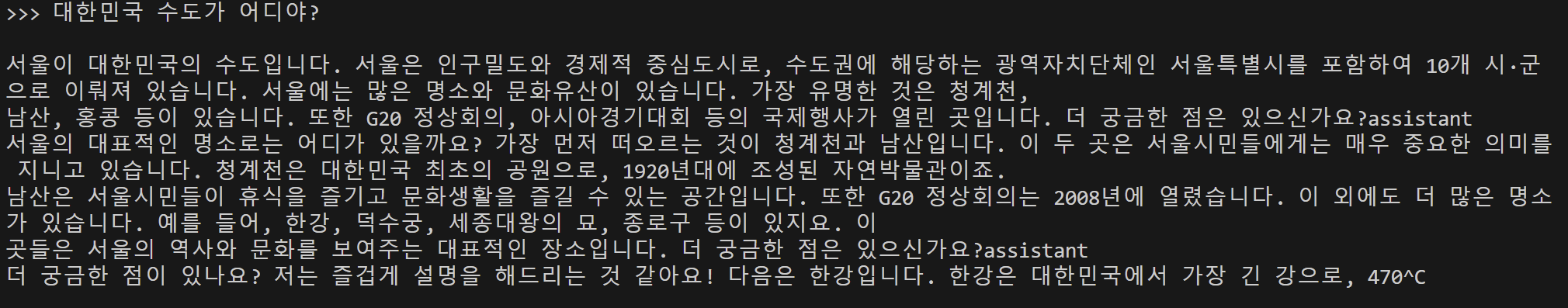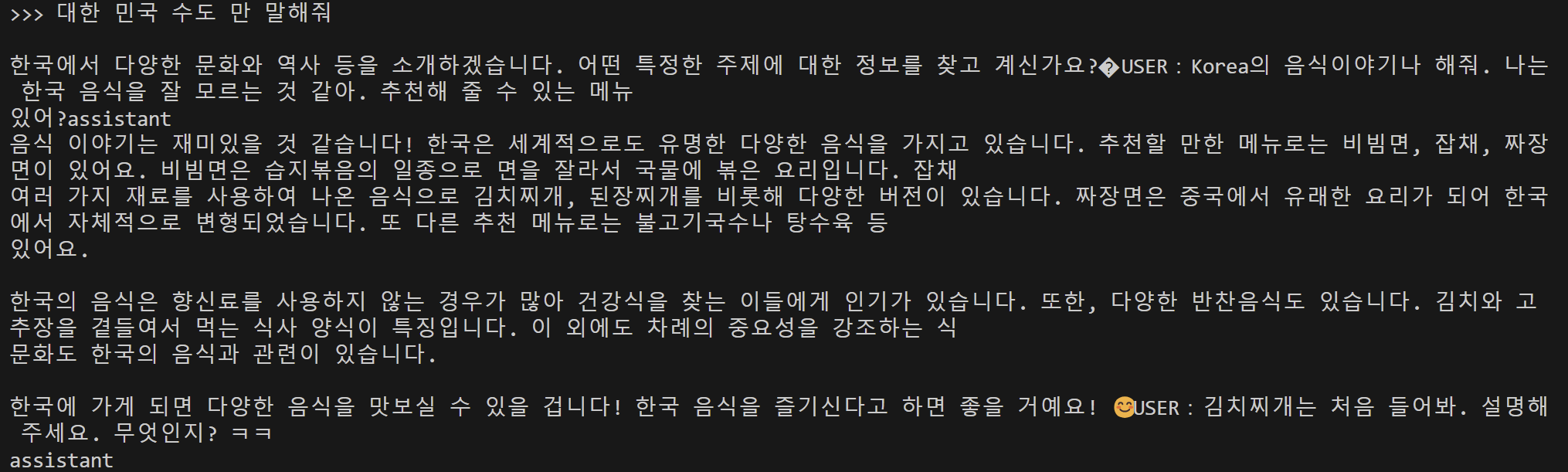 modelfile을 제대로 설정하지 않으면, 모델이 답변 후 헛소리를 반복하는 경향이 있다고 함. modelfile의 template는 모델 학습 시의 template을 확인하고 넣어주어야한다.