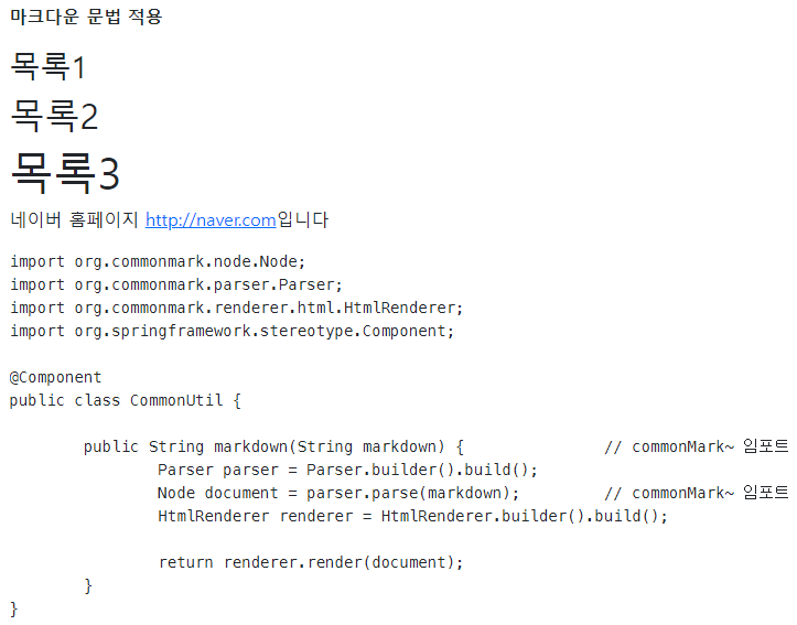 <div class="card-text" th:utext="${@commonUtil.markdown(question.content)}"></div> <!-- utext 링크로 인식하도록 -->