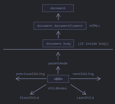 DOM 노드 탐색 관계는 다음과 같습니다.