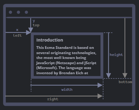 x, y, width, height, top, bottom, left, right 등의 프로퍼티를 가지며,