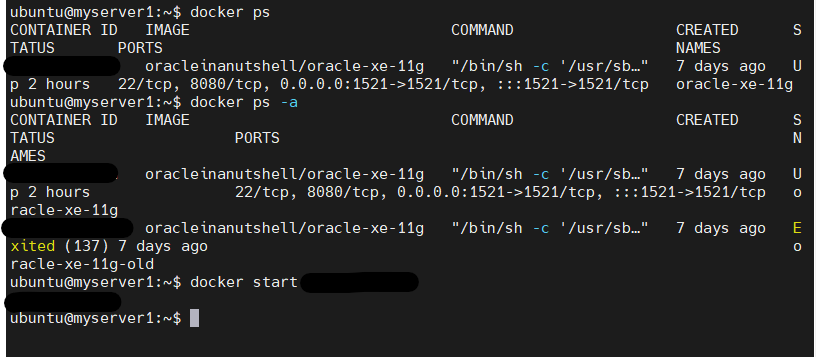 docker ps -a : 모든 컨테이너를 표시 (실행 중, 중지됨, 종료됨 등)