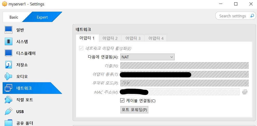 Port Fowarding은 Oracle Virtual Box에서 변경할 수 있다.