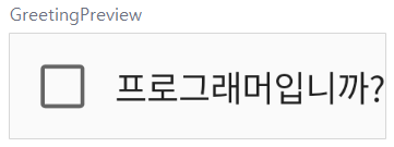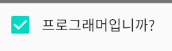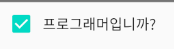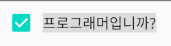 Row에Text하나가 들어 있는 상태를 만들어주자@Composable fun CheckBoxEx() { Row(verticalAlignment = Alignment.CenterVertically) { Text(text = "프로그래머입니까?") } }