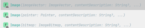 이미지의 속성을 보면 imageVector, painter, bitmap 총 3가지를 활용하여 사용할 수 있다.