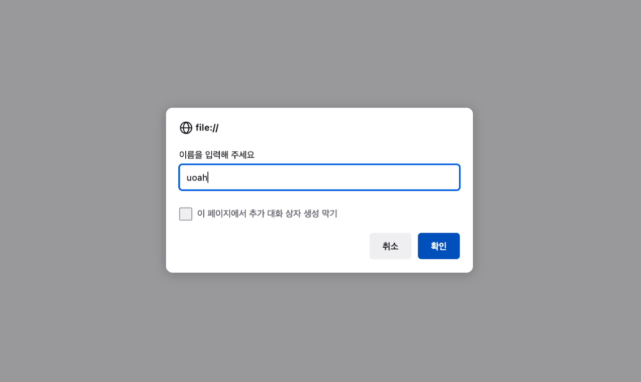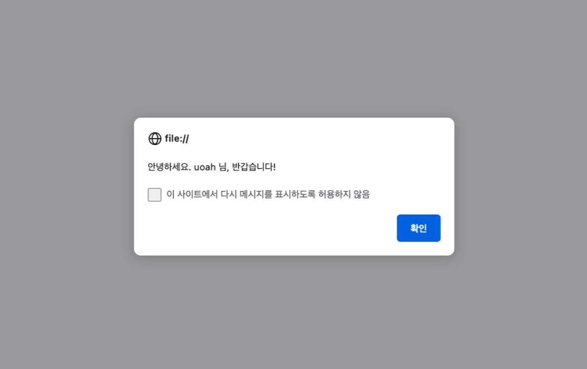 alert('안녕하세요. ' + name + ' 님, 반갑습니다!');