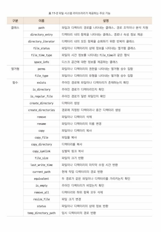 파일 시스템 라이브러리는 파일과 디렉터리 조작에 유용한 기능을 여럿 제공 (단, C++17 이상이 필요)
