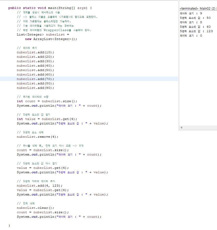 ArrayList에 추가되는 데이터는 순차적으로 배열과 같은 인덱스 번호를 부여받는다