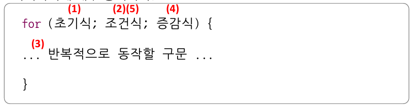 (5) : 증감식을 수행한 후, 다시 조건식으로 이동한다.