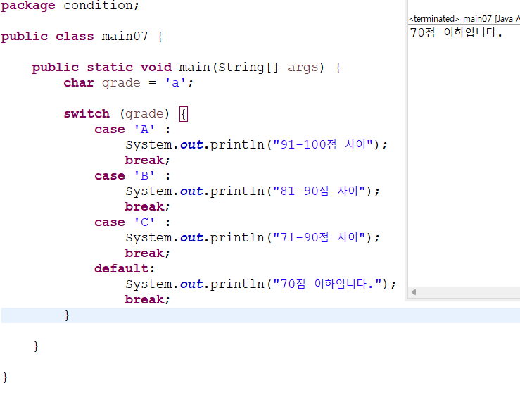 switch문은 하나의 변수(기준값)에 대한 여러 가지