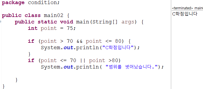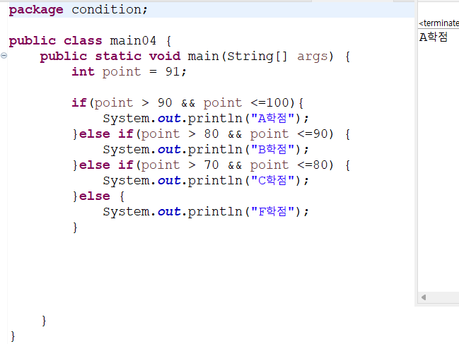 if문과 else문 사이에 else if문으로 두번째 조건, 세 번째 조건을 나열할 수 있다.