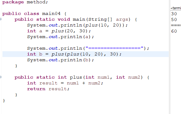 public static 리턴형 메서드2(변수형 파라미터1){ int k = 메서드1(값1);