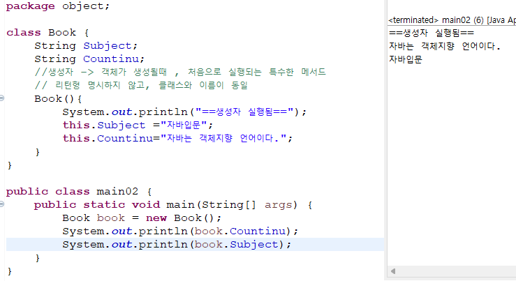 new 키워드를 사용하여 객체가 생성될 때 자동으로 실행되는