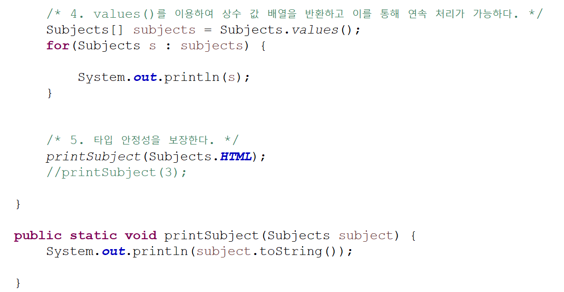 values()를 이용하여 상수 값 배열을 반환하고 이를 통해 연속 처리가 가능하다.