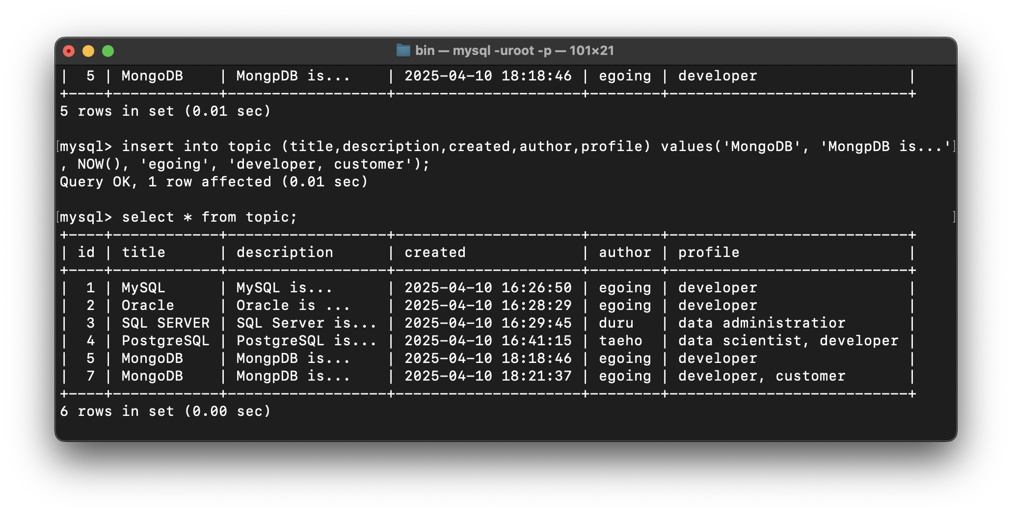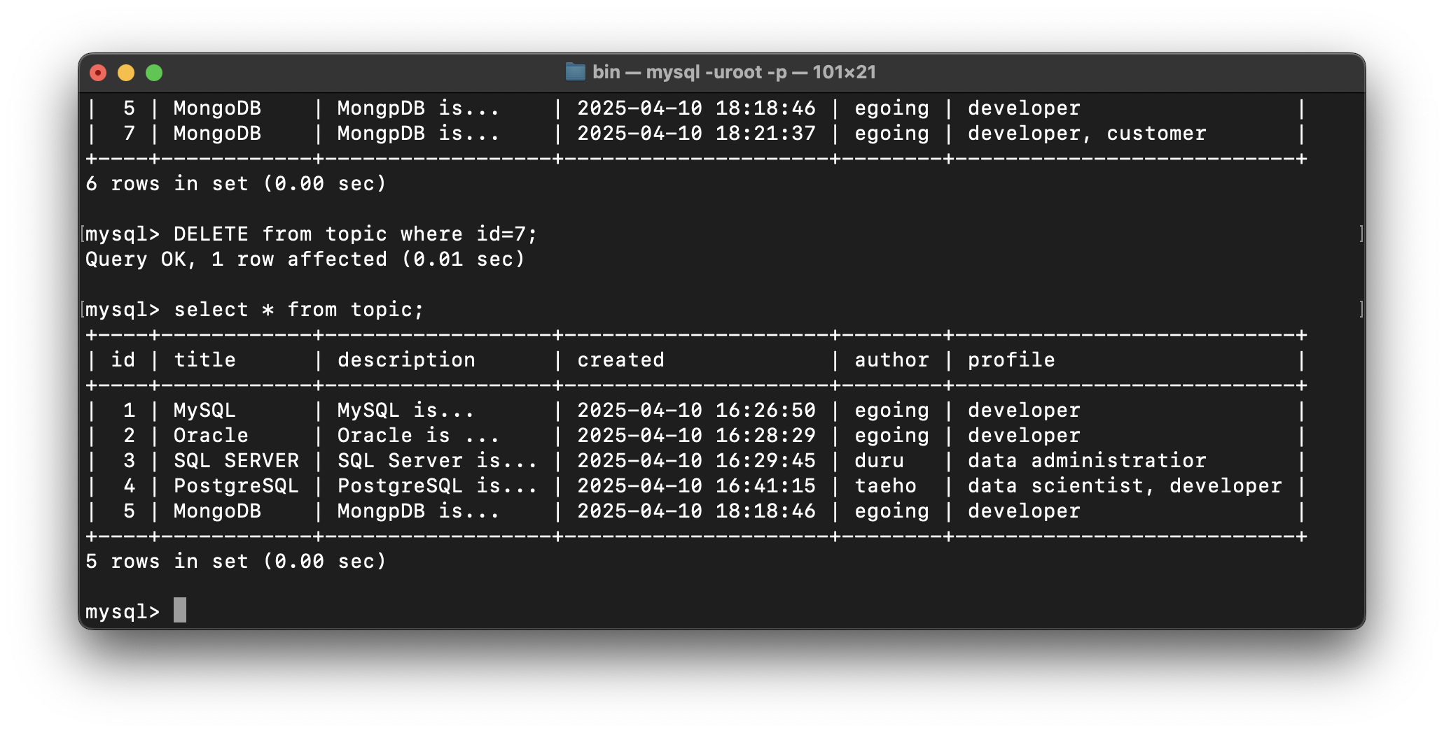 DELETE from topic where id=7;
