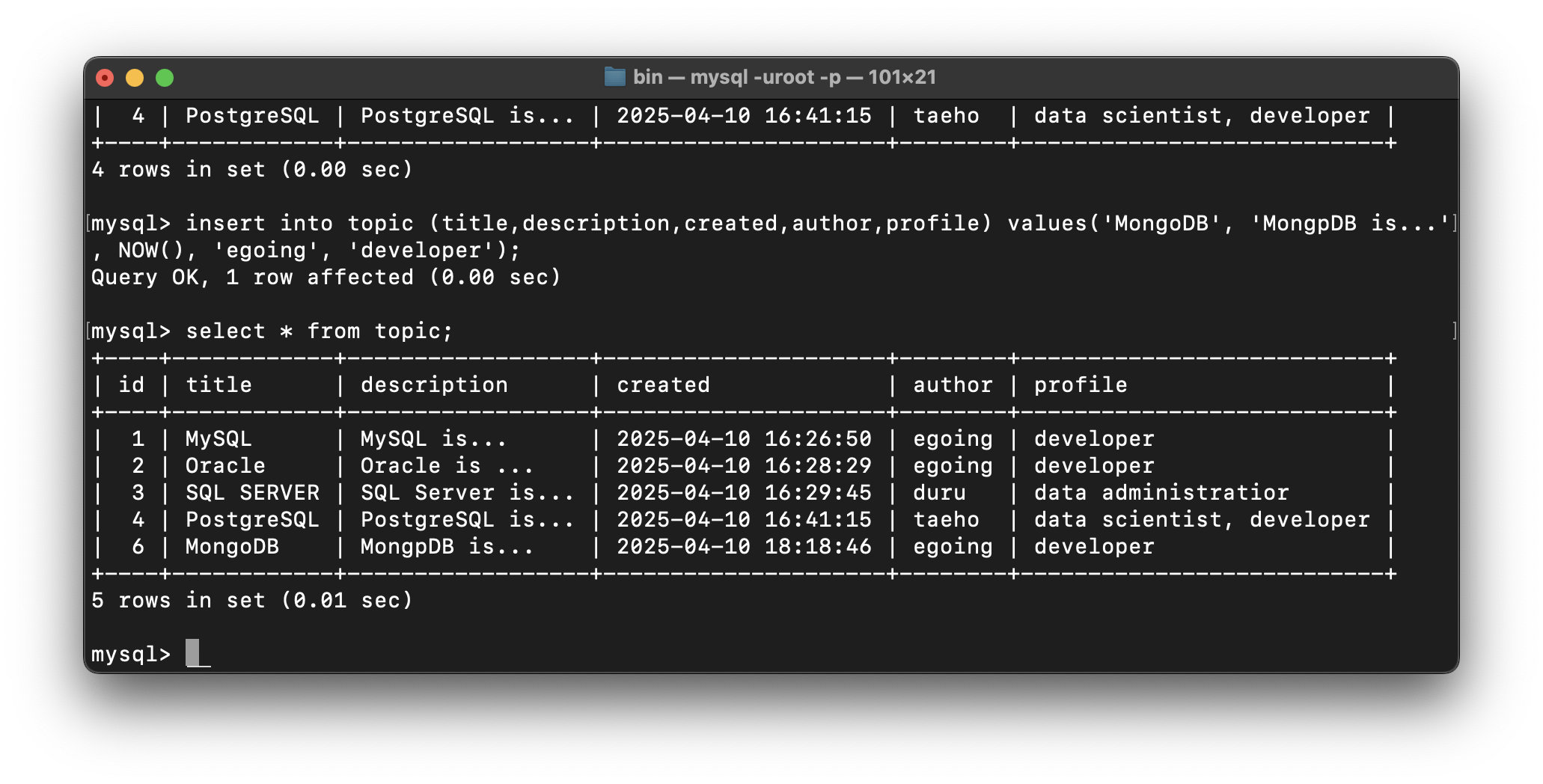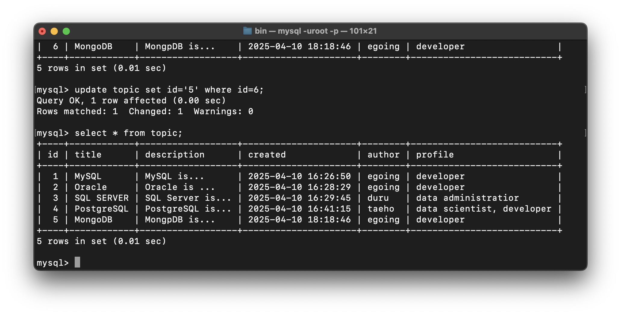 update topic set id='5' where id=6;