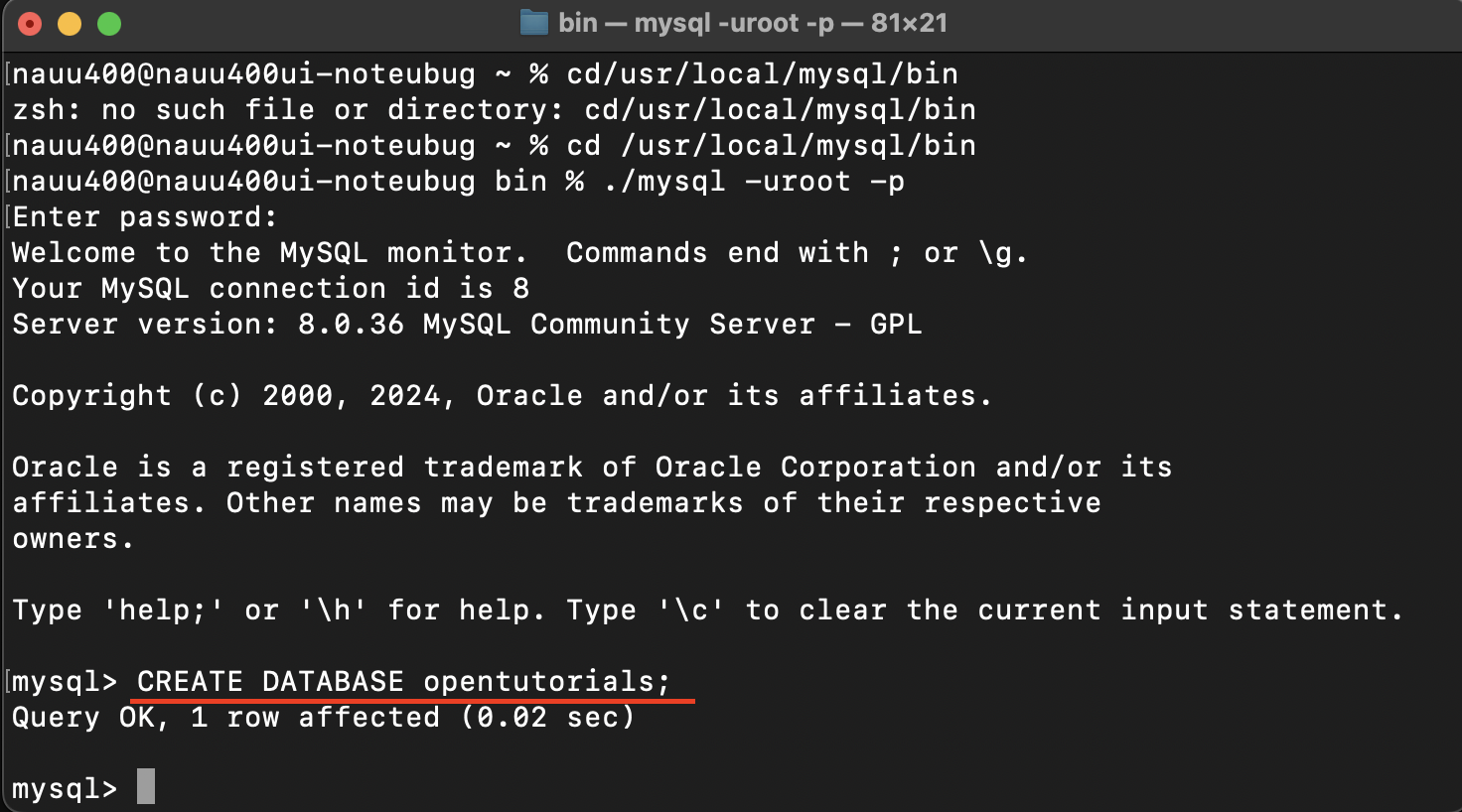 CREATE DATABASE 내가 만들 데이터베이스 이름;