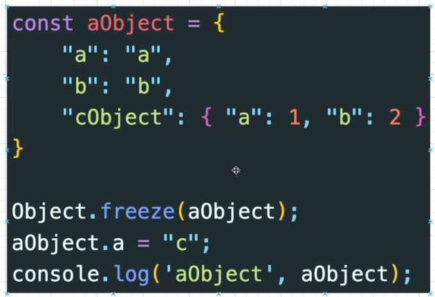 Object.freeze(aObject); // 동결