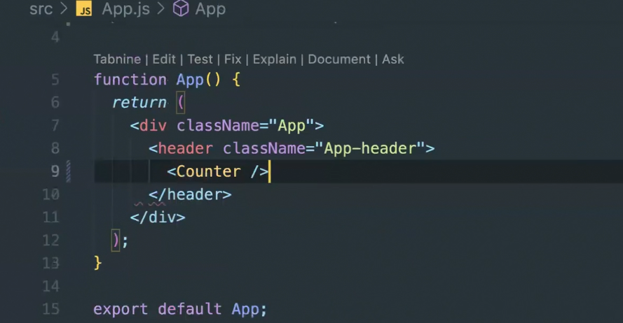 App.js 안에서 Counter 컴포넌트 넣어주기