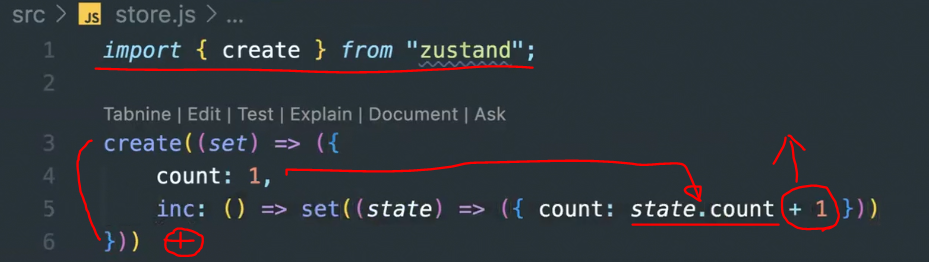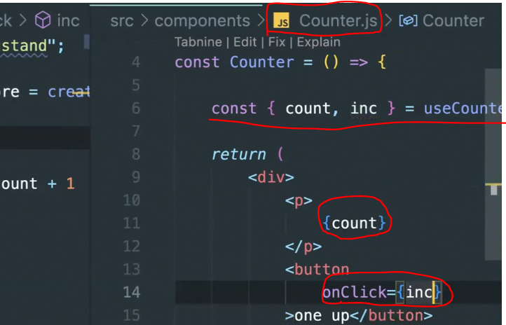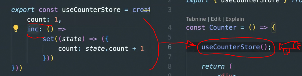 useCounterStore를 호출하면 count랑 inc가 다 호출되는 것📢