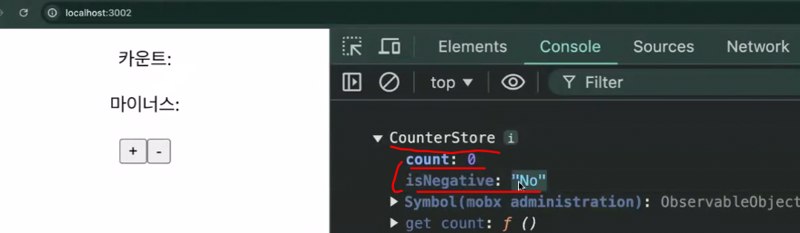 isNegative➡observable state가 바뀌는 거에 따라서 다른 값을 리턴하고 있음