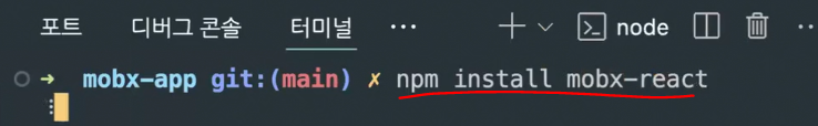 npm install mobx-react 설치하고 다시 실행 npm run start 하기