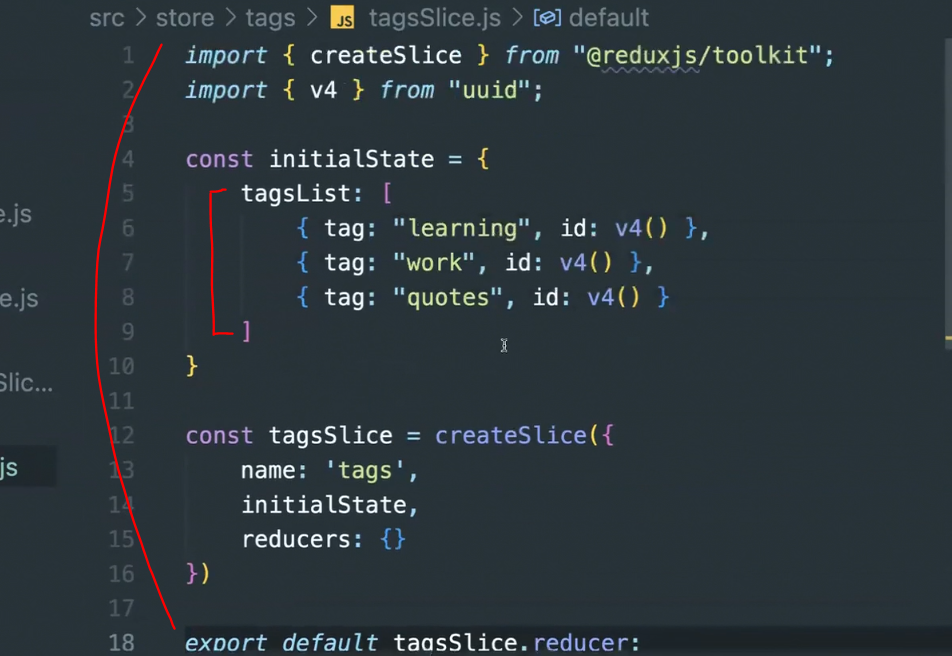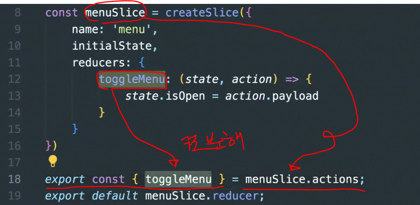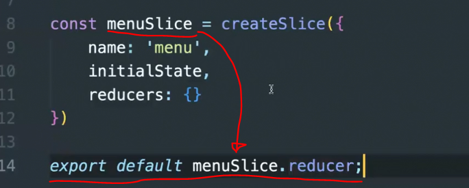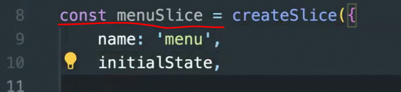createSlice 한 담에 이름은 menu이고, initialState( 초기 값 )지정하기
