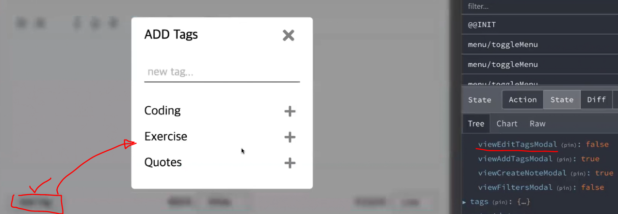 dispatch 해주고 toggleTagsModal을 이용해줄거임