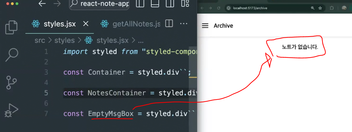 ➕버튼 클릭하면 viewCreateNoteModal이 true 바뀌는 걸 확인 할 수 있음import styled from "styled-components";