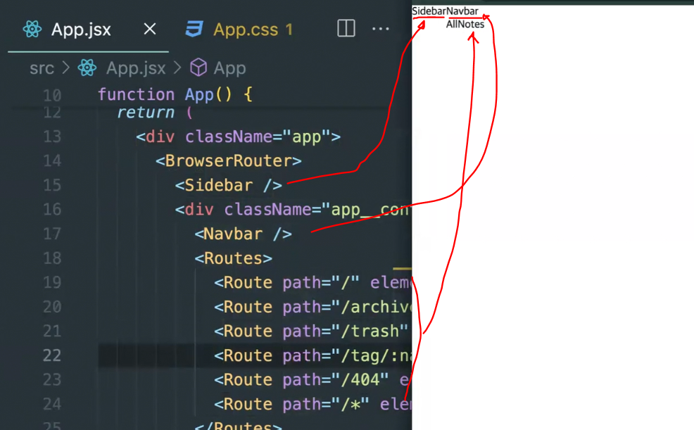 div 태그를 Routes 태그들과 Navbar 컴포넌트 감싸주고