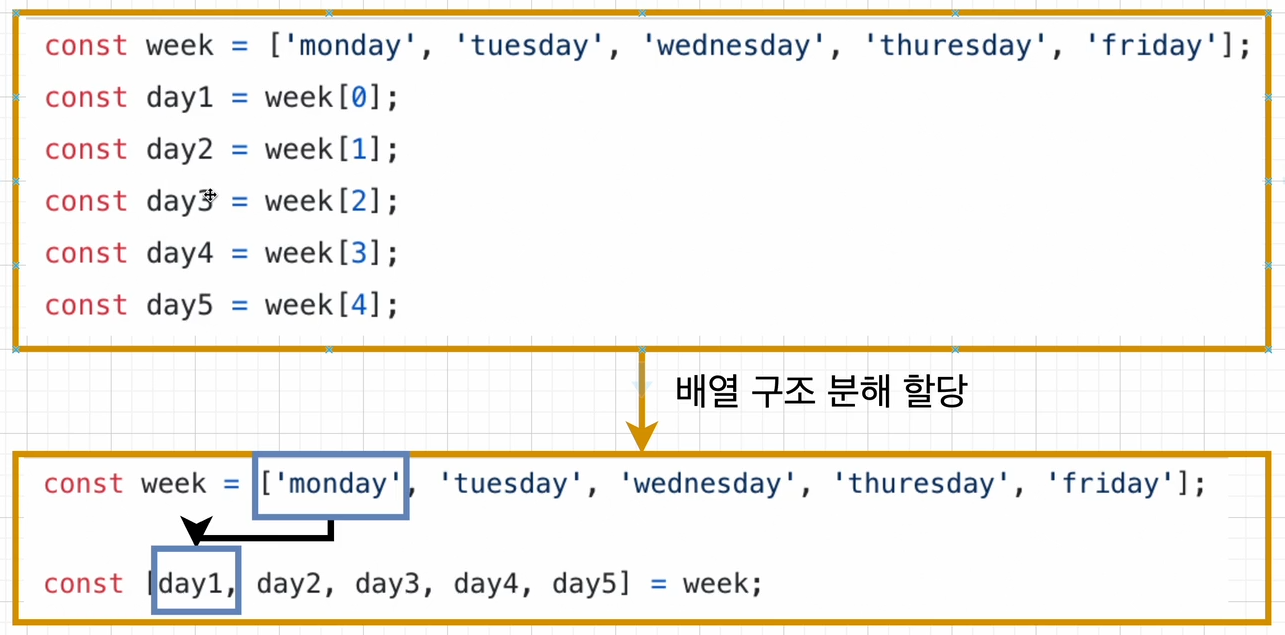 그 값을 개별 변수에 담을 수 있게 하는 JS 표현식❗