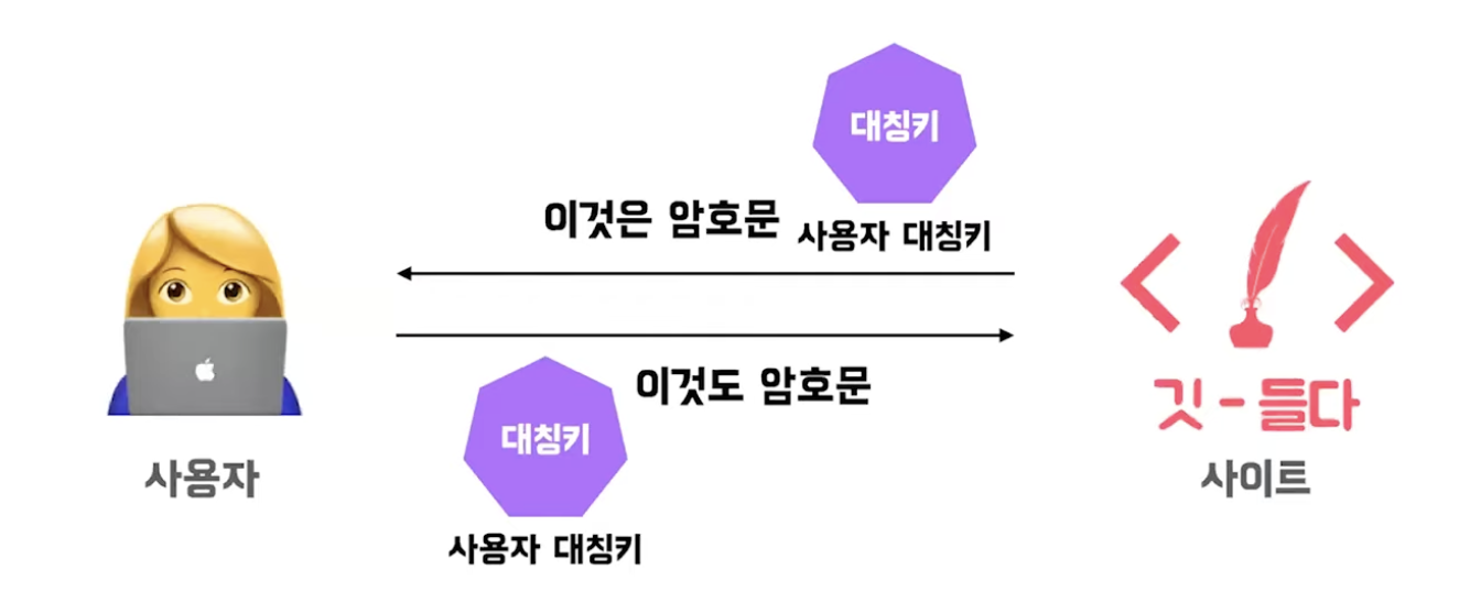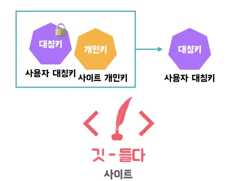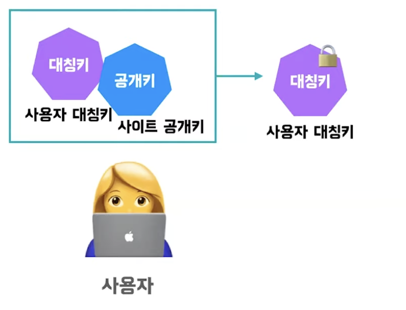 사이트 공개키를 이용해 사용자의 대칭키를 암호화한다.