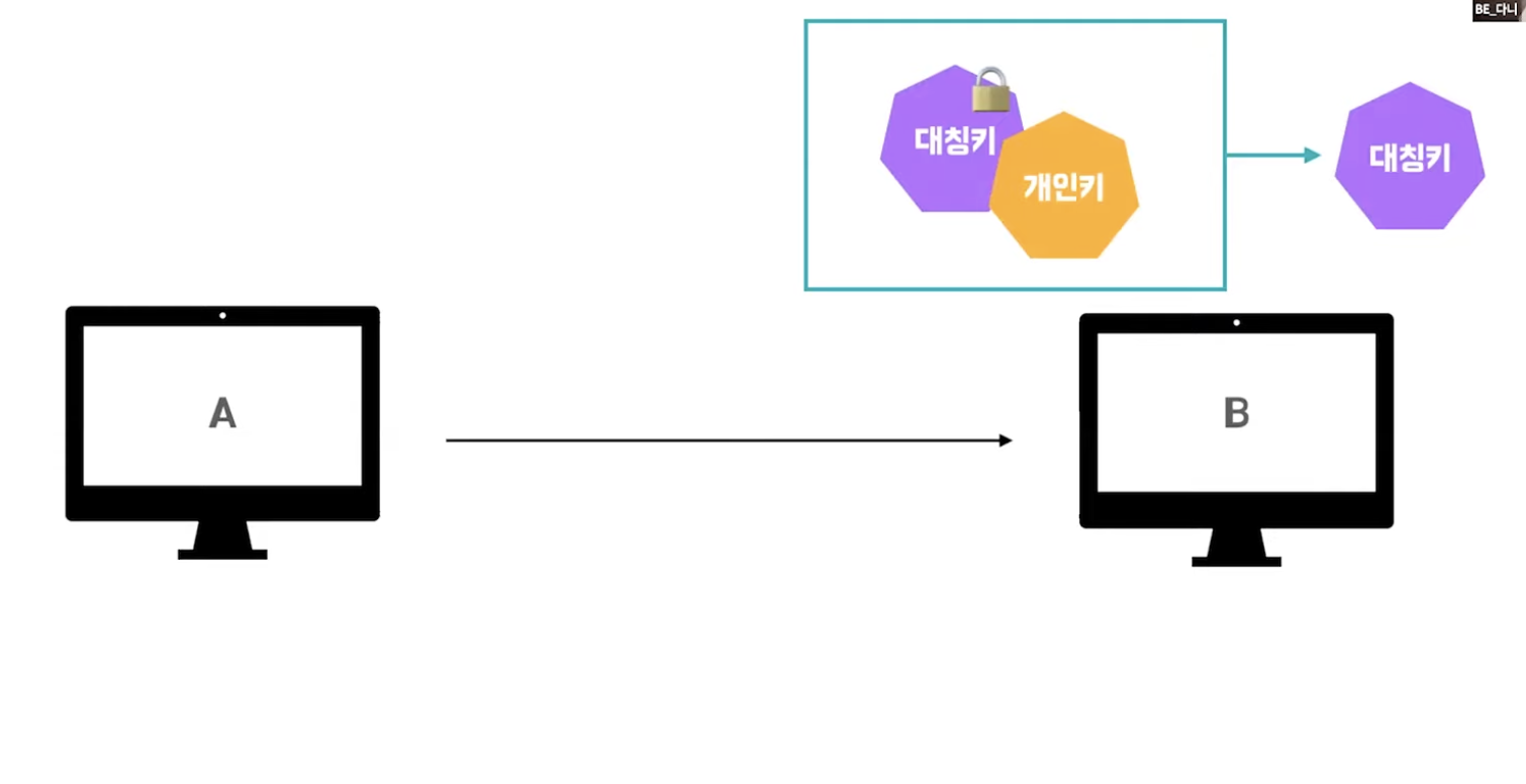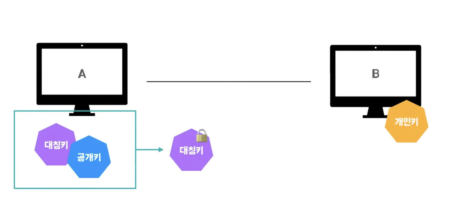 A->B 암호화한 대칭키 전송