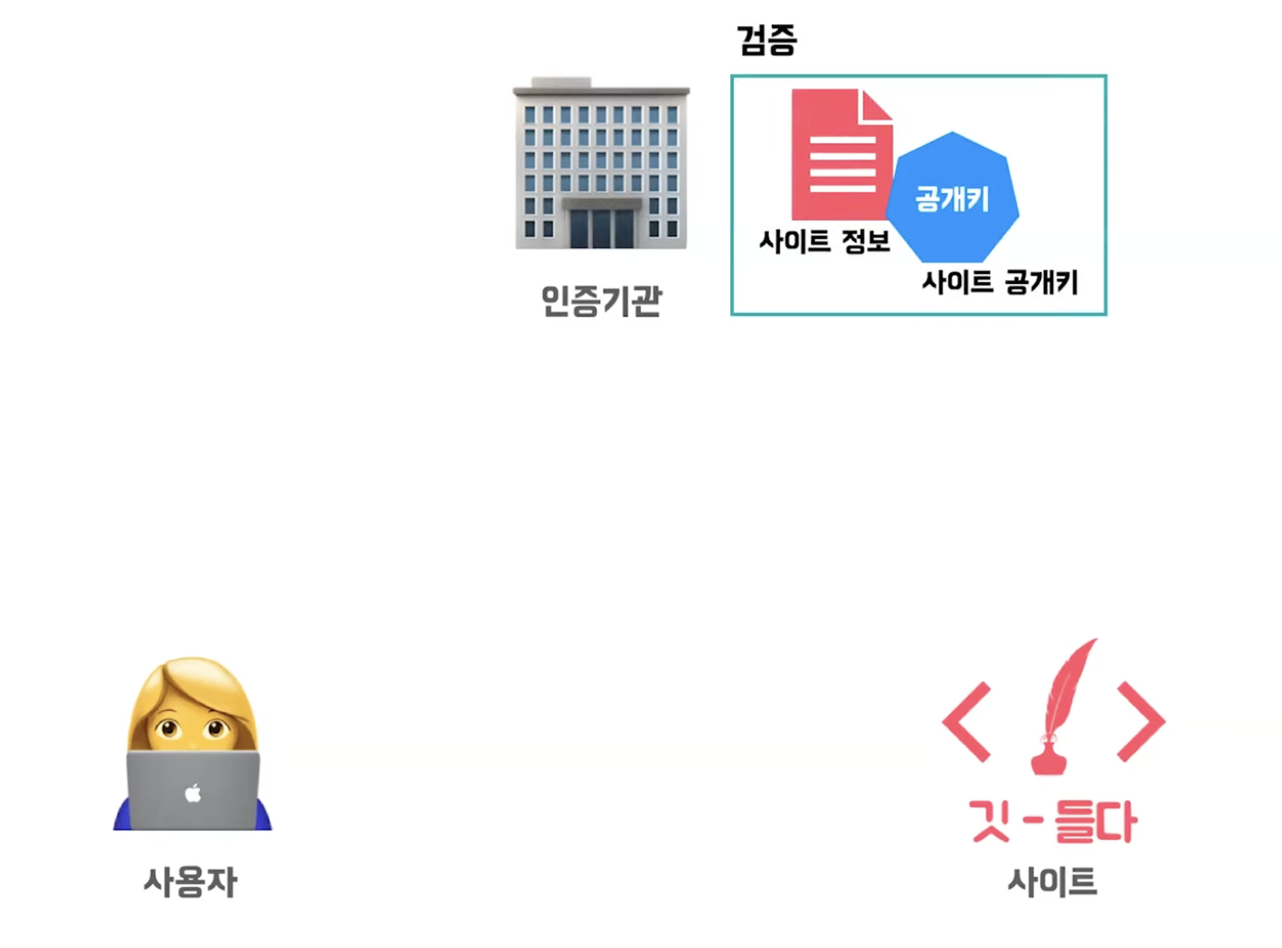 인증기관에서 사이트 정보와 사이트 공개키를 검증하는 과정을 거친다.